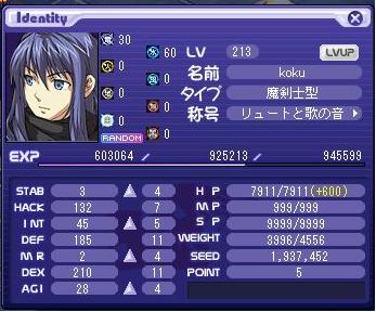 LV:200 STAB 2 HACK 125 INT 44 DEF 173 MR 2 DEX 200 AGI 28